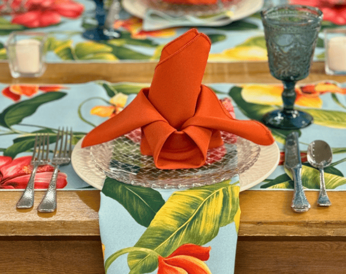 Square Dinner & Salad Plates, Stainless Hampton Flatware, Bengaline Napkin, Melodia Hi-Ball Glass