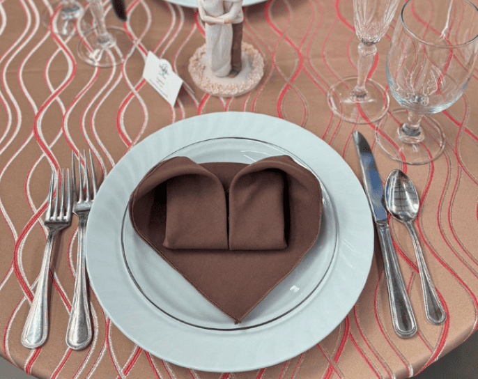 Coupe Dinner & BB Plates, Glass Salad Plate, Silver-plated Flatware, Poly Poplin Napkin, 10.5oz AP & 12oz Wine Glasses